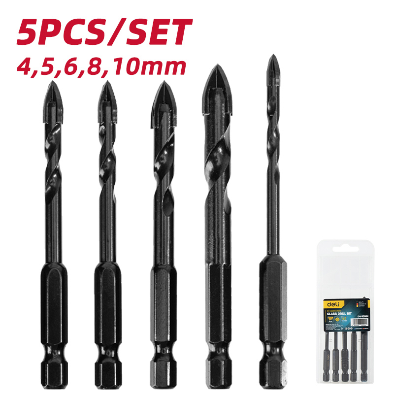 DELI σετ τρυπάνια DH-CZZ005-ED2 για γυαλί, 40Cr YG6X, 4/5/6/8/10mm, εξάγωνο, 5τμχ