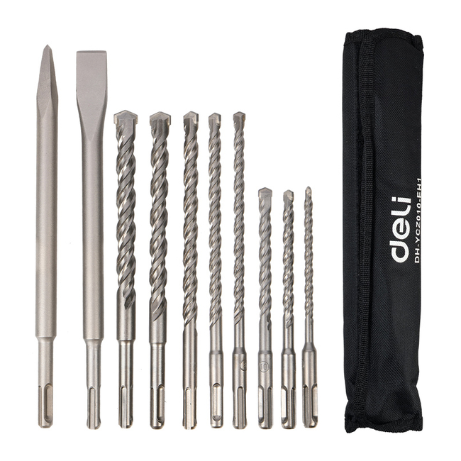 DELI σετ τρυπάνια/καλέμι/βελόνι DH-YCZ010-EH1 για τοίχο, 40Cr YG8, SDS Plus, 10τμχ