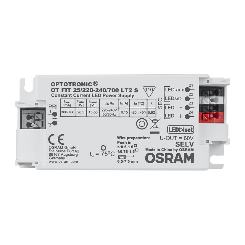 The Osram Netzteil - CC Driver 300~700mA, 15~50V is a high-quality constant current LED power supply that is specifically designed for indoor applications. One of its standout features is the integrated short-circuit protection, ensuring maximum safety during operation.