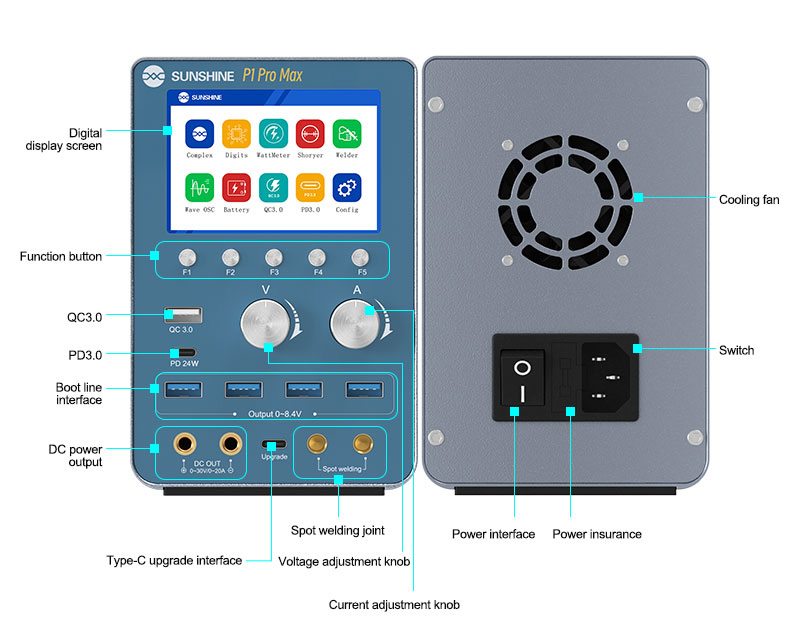 Το τροφοδοτικό πάγκου P1 Pro Max της Sunshine αποτελεί ένα εξαιρετικό εργαλείο για διαγνωστικούς ελέγχους και επισκευές ηλεκτρονικών συσκευών.