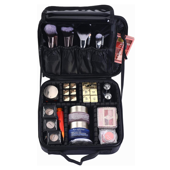 Τσάντα καλλυντικών, ιδανική για ταξίδια και εκδρομές. Εξοπλίζεται με πολλαπλές εσωτερικές θέσεις για την τοποθέτηση προϊόντων περιποίησης και καλλυντικών, ενώ, προσφέρει την δυνατότητα αναδιάταξης των εσωτερικών διαμερισμάτων ανάλογα με τις ανάγκες σας.