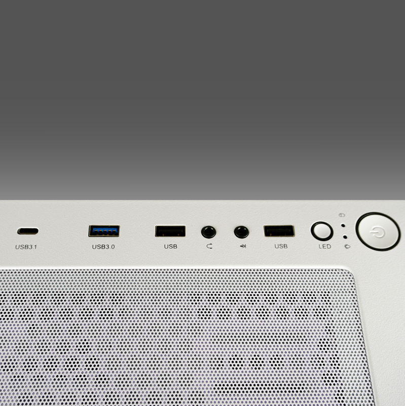 Front I/O1x USB-C, 3x USB-A, HD audio, microphone