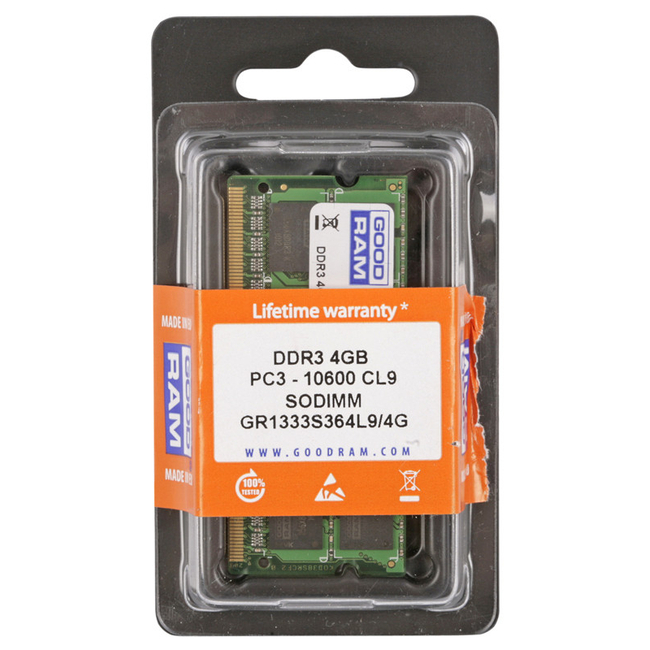 Μνήμη RAM Φορητού DDR3 4GB Goodram 1333 CL9 SODIMM
