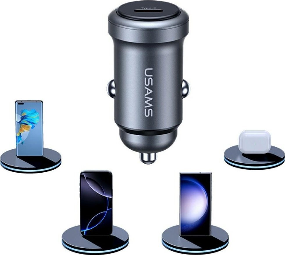 USAMS φορτιστής αυτοκινήτου CC321, USB-C, 30W, γκρι