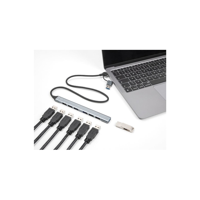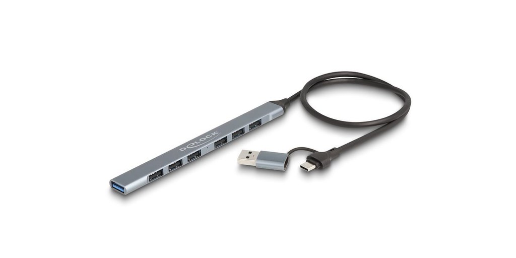 The Delock 7 Port Slim USB Hub is an essential accessory for anyone needing to expand their USB connectivity. With a compact and robust design, it offers seamless integration with both computers and mobile devices.