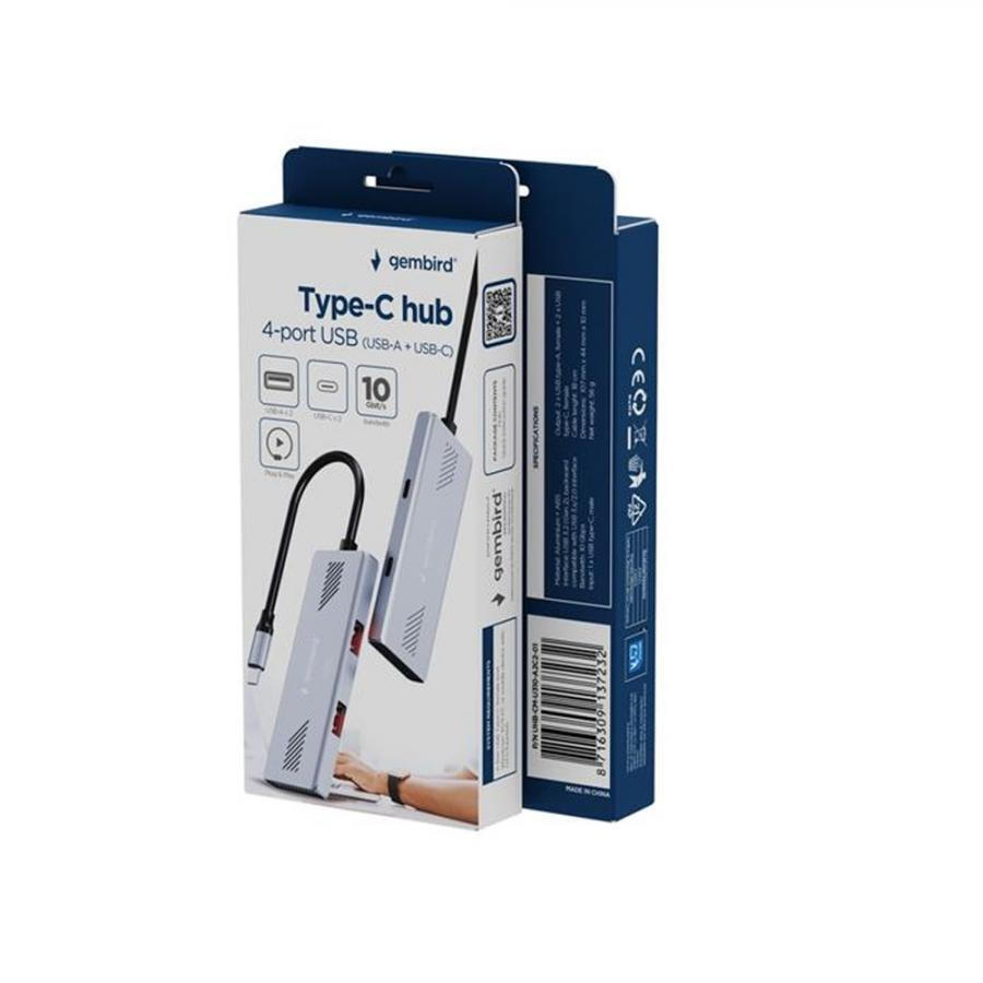 USB Hub GEMBIRD 4 Port A C USB3 2 Gen2 Type C Silver