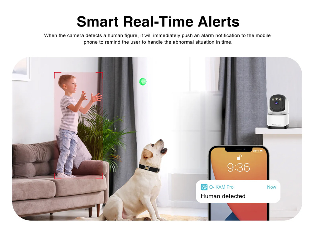 -Alarm detection: Motion detection, human detection, human framing, siren sound, and area detection