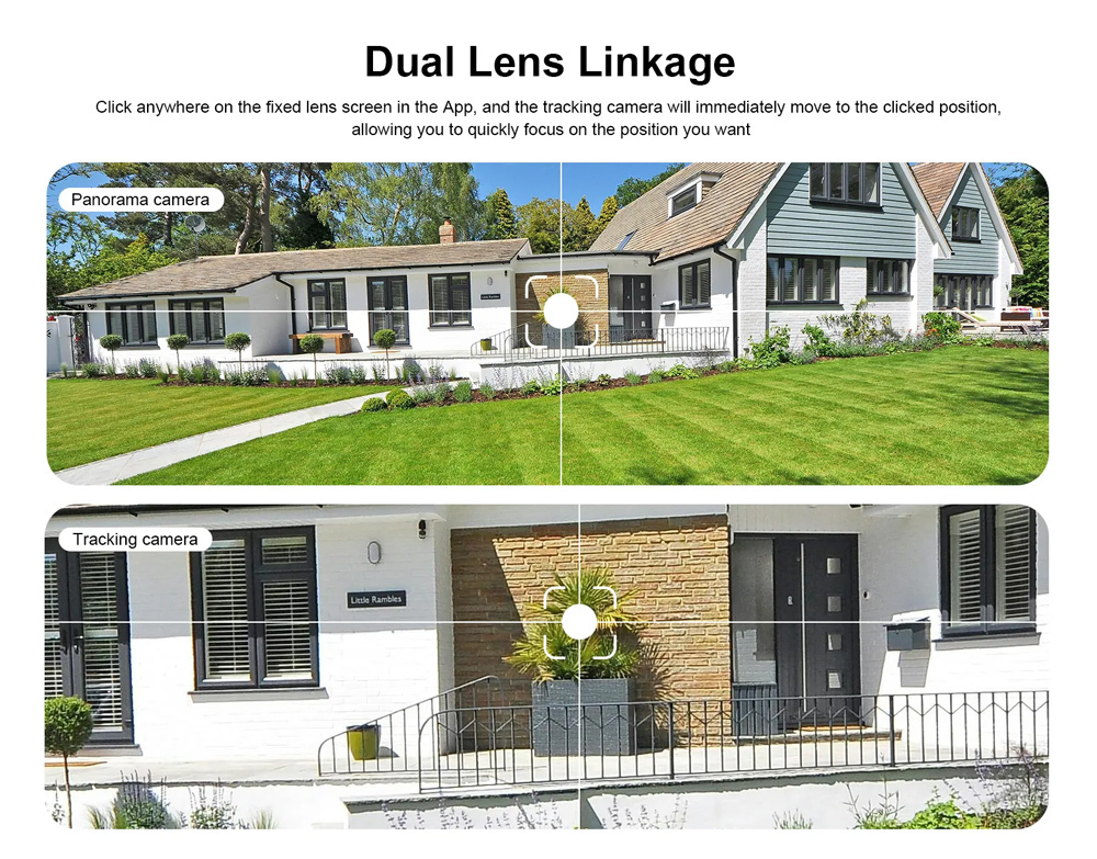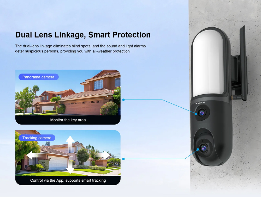 Ενσωματώνει 2 φακούς που επιτρέπουν μεγαλύτερη κάλυψη στον χώρο και υποστηρίζει PTZ λειτουργία που σας επιτρέπει την οριζόντια και κάθετη μετακίνηση της κάμερας μέσω της εφαρμογής.