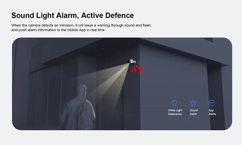 Μπορεί να ανιχνεύσει κινήσεις, στέλνοντας ειδοποιήσεις στο smartphone σας κάθε φορά που ανιχνεύεται κίνηση αλλά και να ενεργοποιήσει ηχητικό και οπτικό (με φως) συναγερμό.
