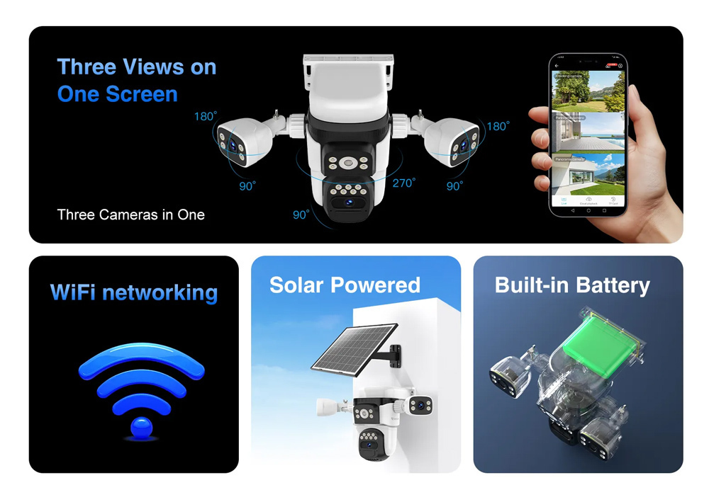 VSTARCAM Smart Solar Camera CB621SR Triple Lens 2MP WiFi SD PTZ IP66