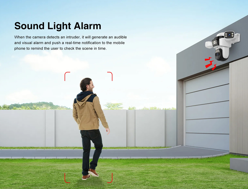 Μπορεί να ανιχνεύσει την ανθρώπινη σιλουέτα και κίνηση, στέλνοντας ειδοποιήσεις στο smartphone σας κάθε φορά που ανιχνεύεται κίνηση αλλά και να ενεργοποιήσει ηχητικό και οπτικό (με φως) συναγερμό.