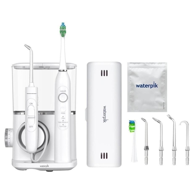 The Waterpik Sensonic Complete Care CC-04 is an innovative product that redefines oral hygiene. This dual-function device features both a water flosser and a rechargeable sonic electric toothbrush, providing a complete solution for your oral care routine.
