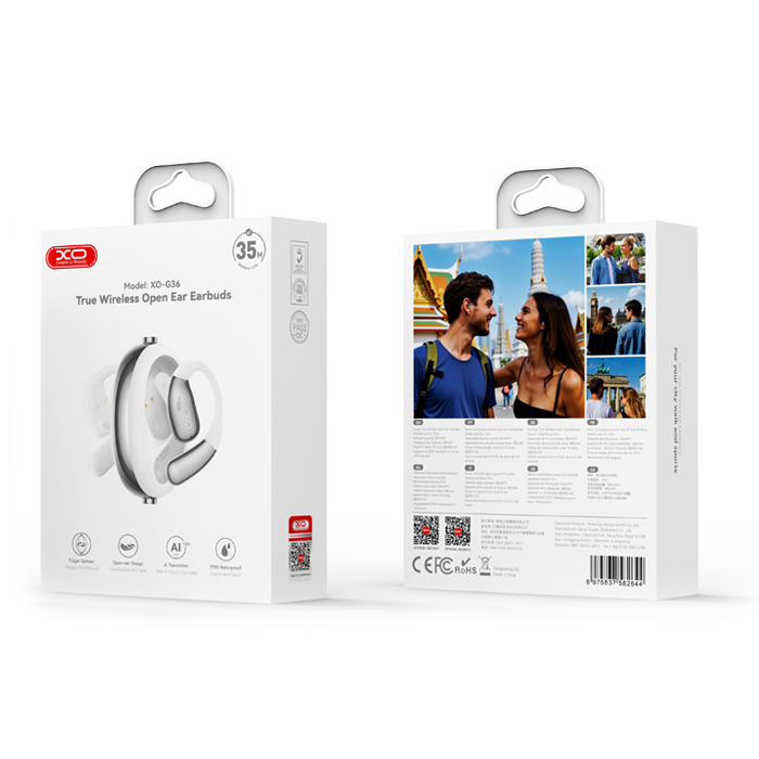 XO Bluetooth Handsfree G36 White Color Ear Hook AI Translation Headphones