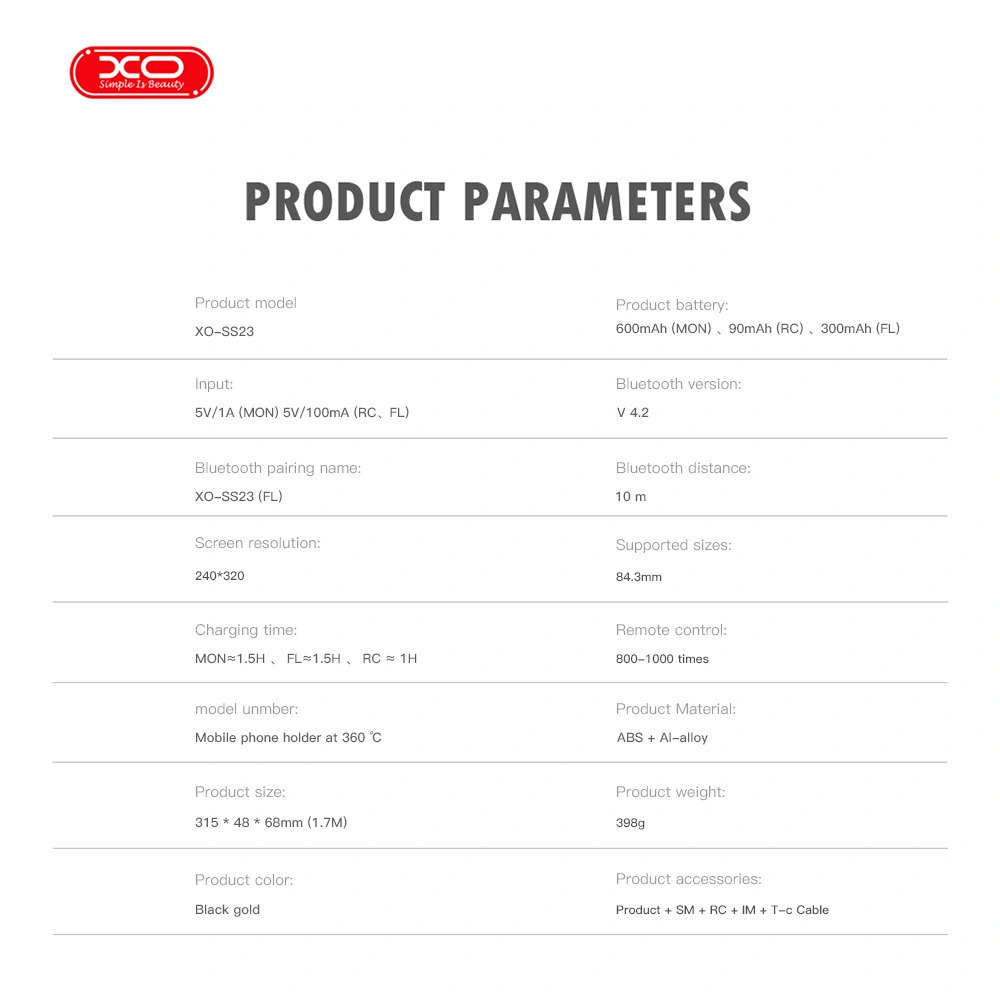 XO Bluetooth Selfie Stick with Remote Control and Detachable Ring Lights