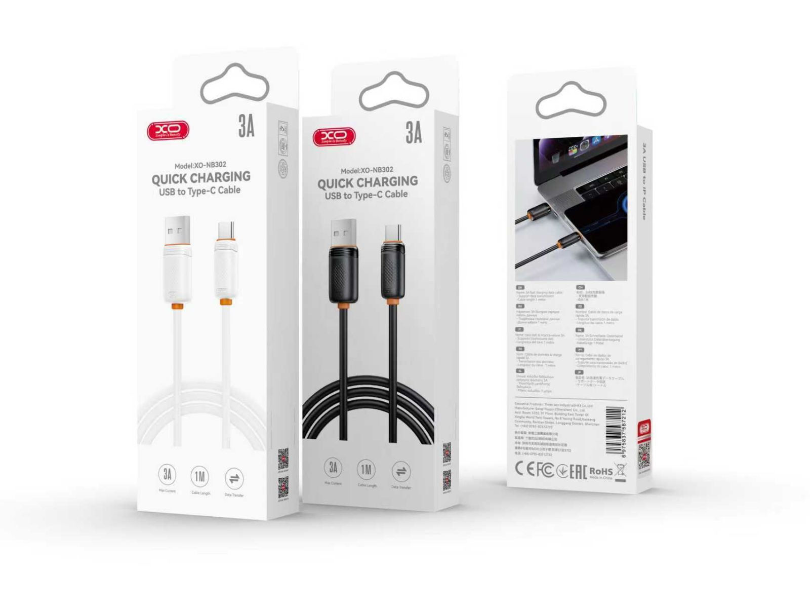 XO Cable High-Speed USB A to USB Type-C XO NB302 WHITE 15W 1.00m