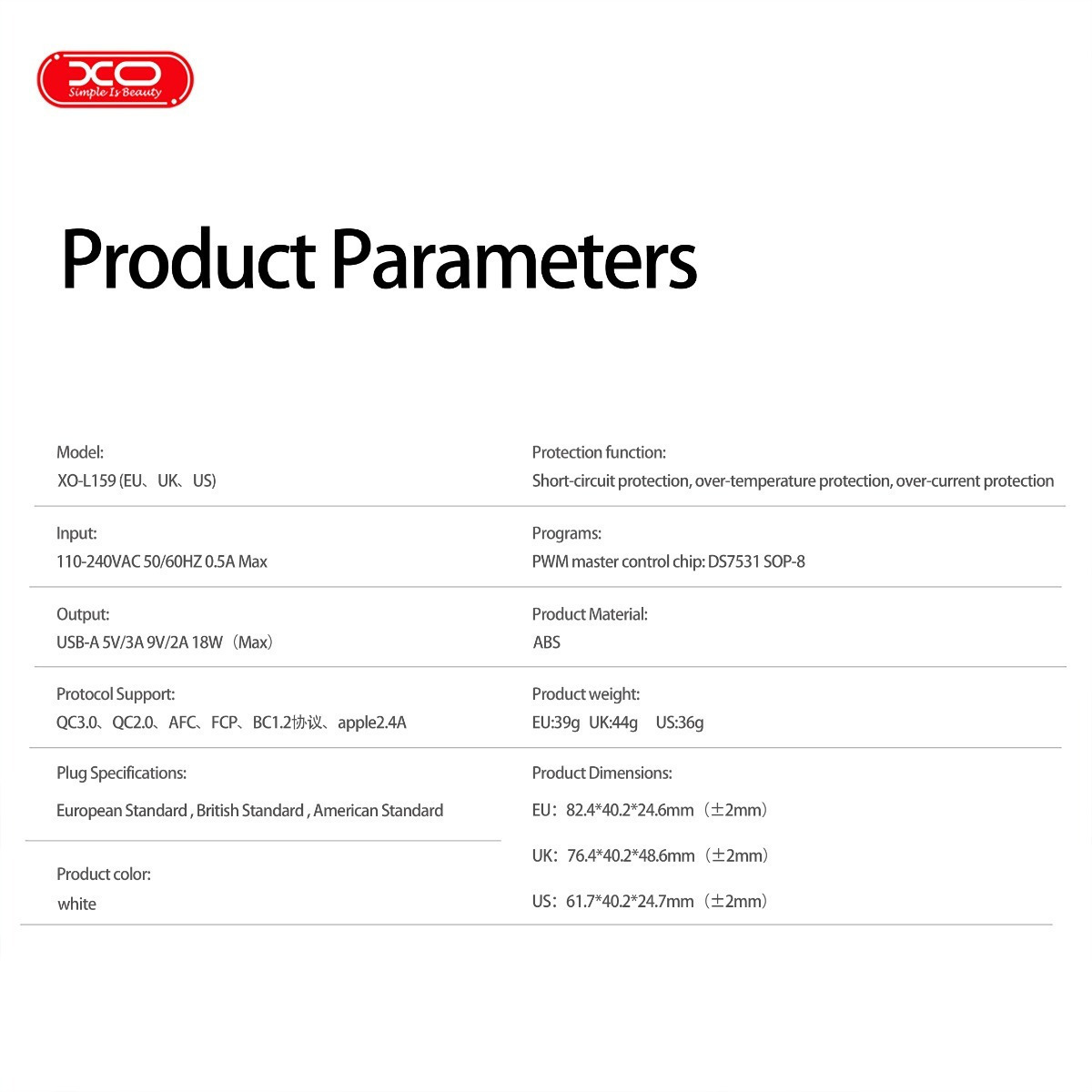 ModelL159 (EU) QC3.0