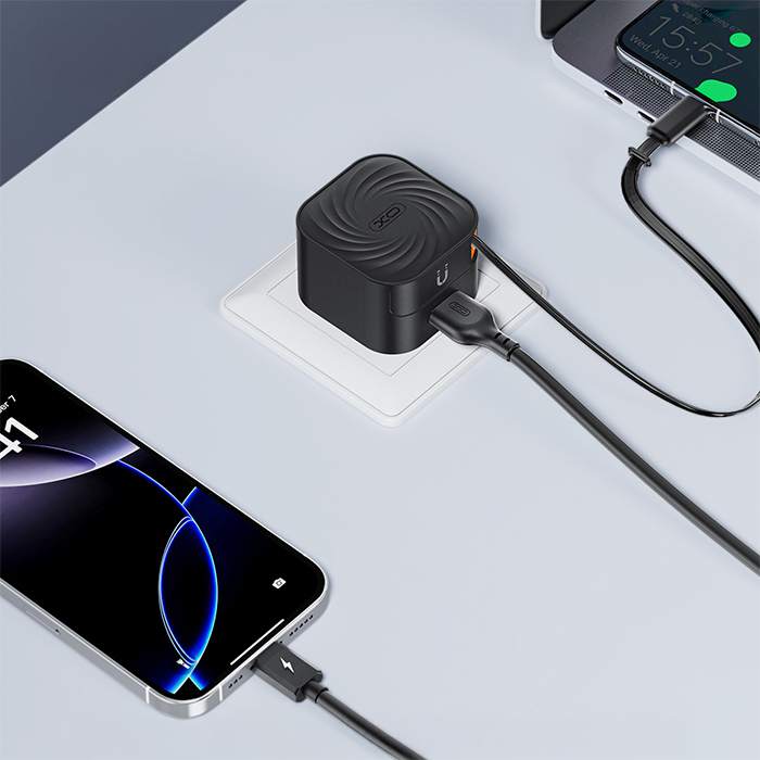 XO Charger with USB-A port and built-in Type-C cable 20W L165