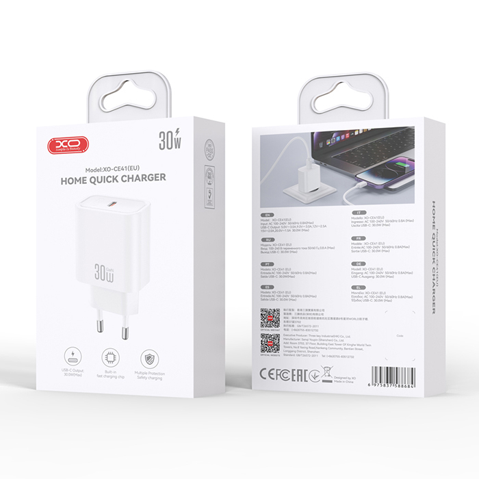 XO Universal USB-C Charger PD30W White CE41