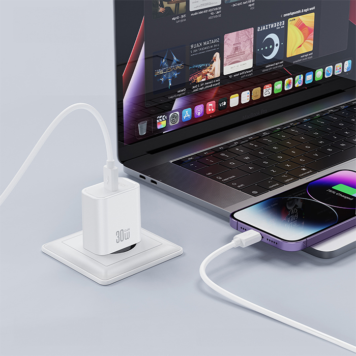XO Wall Charger USB C PD30W with Detachable USB C Cable White
