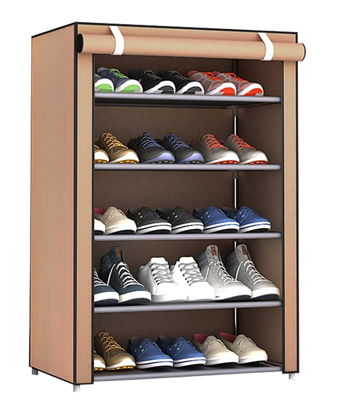 Υφασμάτινη παπουτσοθήκη HUH-0124 με 5 ράφια, 60x30x90cm, καφέ