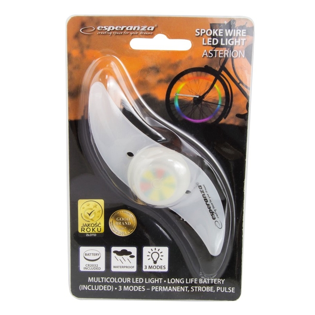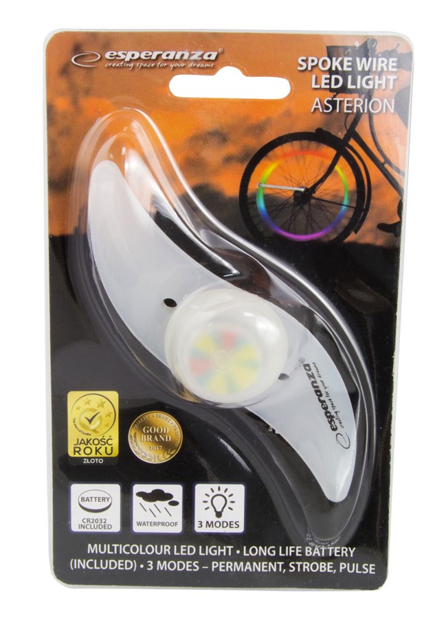 LED φωτισμός ακτίνας ποδηλάτου Asterion EOT006 με εύκολο σύστημα τοποθέτησης. Διαθέτει LED υψηλής απόδοσης και χρώματα που εναλάσσονται συνεχώς κατα την οδήγηση με 3 διαφορετικούς τρόπους φωτισμού. Αυξάνει σημαντικά την ασφάλεια σας στο δρόμο και είναι ιδανικός για τοποθέτηση σε οχήματα με ακτίνες. Λειτουργεί με 1 μπαταρία CR2032 (συμπεριλαμβάνεται).