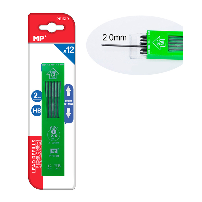 MP ανταλλακτικές μύτες για μηχανικό μολύβι PE131R, ΗΒ, 2mm, 12τμχ