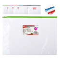 Σετ διάφανων φακέλων για αποθήκευση εγγράφων και μικρο-αντικειμένων με εύκολο, χρωματιστό φερμουάρ τύπου zip. Διαθέτει θήκη για κάρτα.