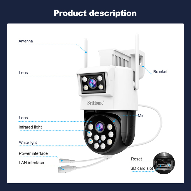 Κάμερα Παρακολούθησης Srihome DUAL LENS PANORAMIC MONITORING IP 2MP+2MP HD