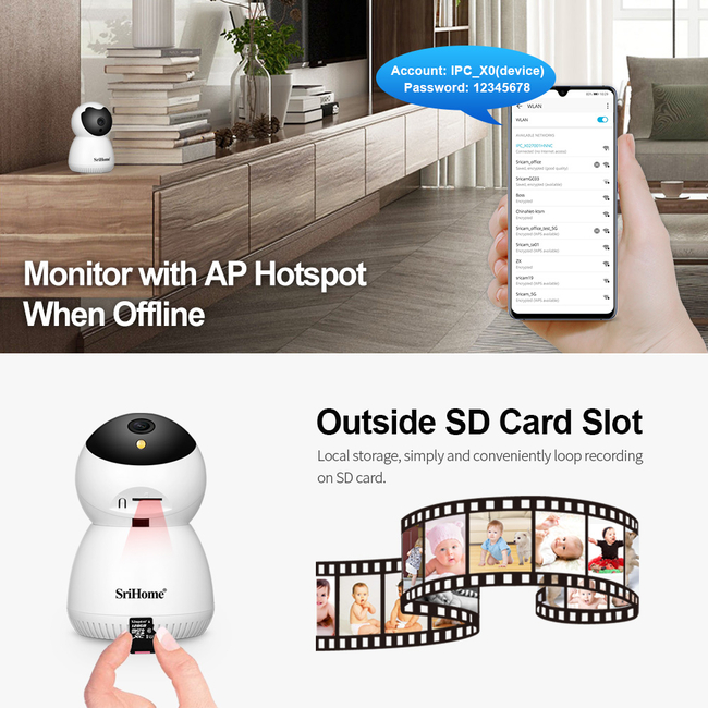 - Απενεργοποιήστε το φωτιστικό, εναλλαγή στην ασπρόμαυρη νυχτερινή όραση μέσω της εφαρμογής SriHome