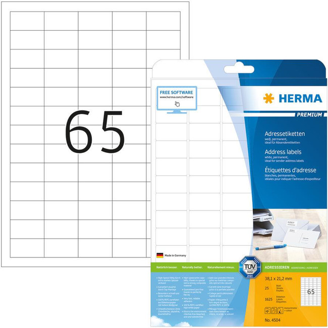 Adhesive labels per sheet
