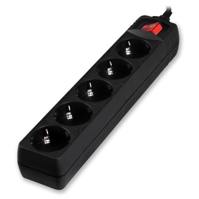 Πολύπριζο 5 θέσεων με διακόπτη ON/OFF και καλώδιο 1.5m σε μαύρο χρώμα.