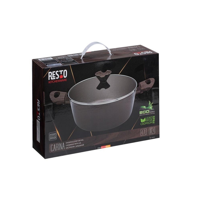 Η κατσαρόλα Resto (κωδικός 93019) είναι ιδανική για μαγείρεμα μεγάλων μερίδων, με διάμετρο 24cm και χωρητικότητα 4,7 λίτρων. Κατασκευασμένη από σφυρήλατο αλουμίνιο, εξασφαλίζει άριστη κατανομή θερμότητας και μακροχρόνια ανθεκτικότητα.