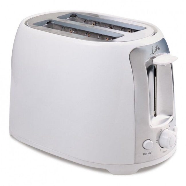 Η LIFE Crispy έχει ισχύ 750W, διαθέτει υποδοχές για 2 φέτες ψωμί και μηχανισμό αυτόματης ανύψωσης για εύκολη αφαίρεση του ψωμιού.