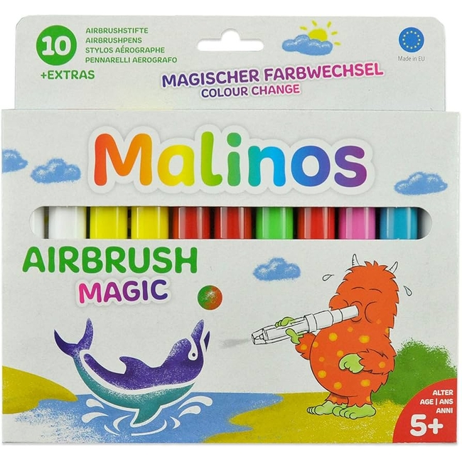 Το Amewi Airbrush Magic 10+1 Malinos είναι ένα δημιουργικό και ευέλικτο σετ αερογράφων που απευθύνεται σε παιδιά ηλικίας 5 ετών και άνω. Αυτό το εντυπωσιακό σετ περιλαμβάνει 10 διαφορετικά χρώματα γραφής, όλα όμορφα συσκευασμένα σε μια συμπαγή και ελκυστική θήκη.