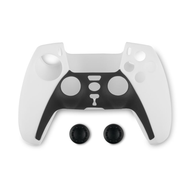 Spartan Gear - Controller Silicon Skin Cover and Thumb Grips (compatible with playstation 5) (colour: Black/White)