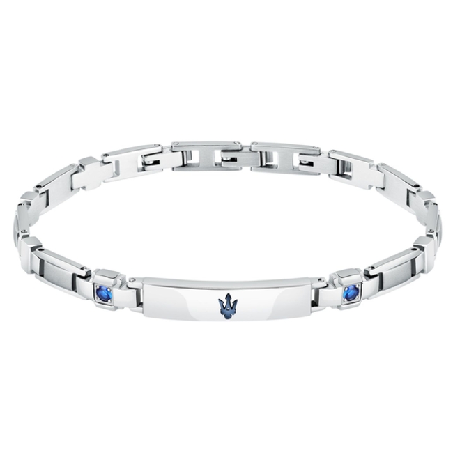 MAN BRACELET MASERATI JM224AXO02 (18,5-3,5CM ). Material: STAINLESS STEEL. Colour: GREY. Measures: 18,5-3,5CM.. . SAPPHIRE BR IP BLU+LG BLU GEM. 18+3.5CM