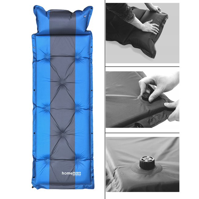 HOME USE αυτοφούσκωτο στρώμα HUH-0237 με μαξιλάρι, μονό, 192x60x3cm, μπλε/γκρι