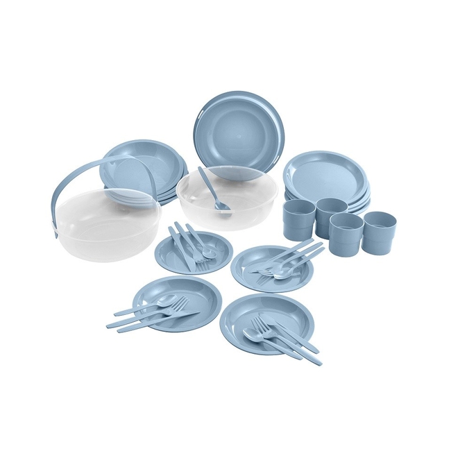 Το Camping set Blue 262887 Curver είναι ένα ολοκληρωμένο σετ σκευών κατασκήνωσης σχεδιασμένο για εξωτερική χρήση, που περιλαμβάνει συνολικά 33 κομμάτια. Ο καλά σχεδιασμένος σχεδιασμός του περιλαμβάνει στρογγυλά σχήματα και καπάκια για κάποια από τα στοιχεία, βελτιώνοντας την χρησιμότητα και την άνεση κατά τη διάρκεια εκδρομών κατασκήνωσης.