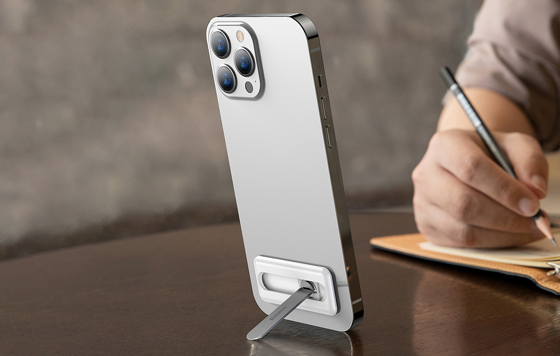 Conveniently watch videos on your phone or live stream. The self-adhesive bracket by Baseus allows you to stably place your smartphone on your desk both horizontally and vertically. Its bracket rotates 360°, you can also adjust its tilt up to 90° and height. The stand won't interfere with wireless charging, and it's incredibly easy to install - just clean the back of your phone and then stick it on.