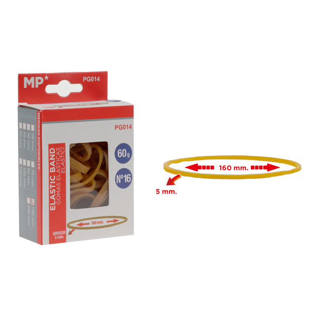 MP λαστιχάκια συσκευασίας PG014 σε κουτί, No16, 5x160mm, 60g