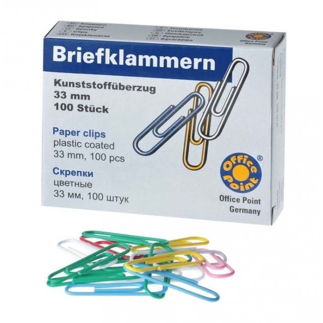 Συνδετήρες Officepoint 33mm με πλαστική επικάλυψη 100Χ (MAG-1463310-00)