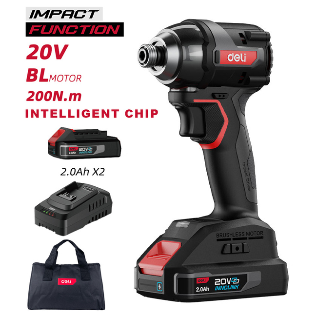 Παλμικό Κατσαβίδι Deli Μπαταρίας De-Qz20-1D2, Brushless, 20V, 2X 2Ah, 200N.M