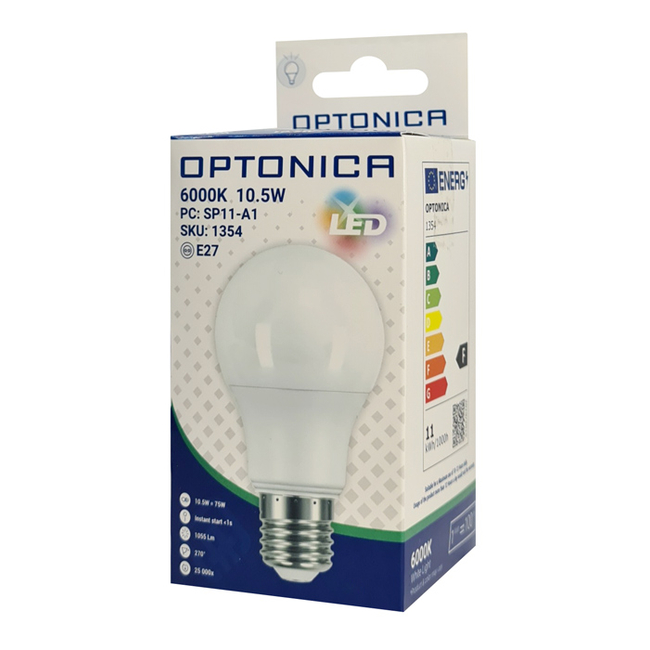 OPTONICA LED λάμπα A60 1354, 10.5W, 6000K, E27, 1055lm