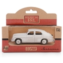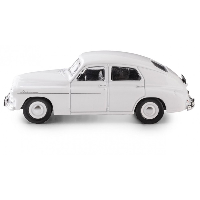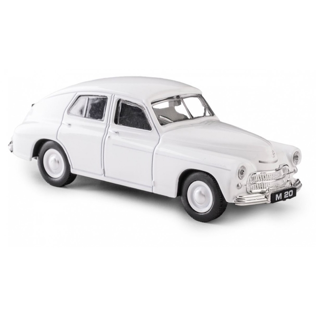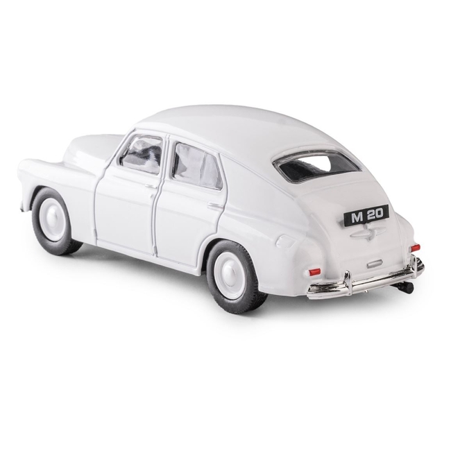 Renowned for its sturdy construction and reliable durability, the Warszawa M20 became especially popular as a taxi vehicle during its time. Its timeless 1940s-style design features a classic fastback silhouette in a pristine white finish, capturing the historic essence of mid-20th-century Eastern European automotive engineering.