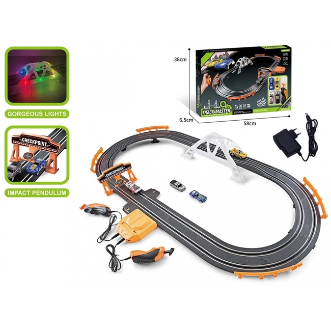 The Race Track 1:64 Length 250 cm is a high-quality racing track that promises endless fun for car enthusiasts of all ages. This impressive track features an illuminated bridge that adds excitement to your racing experience.