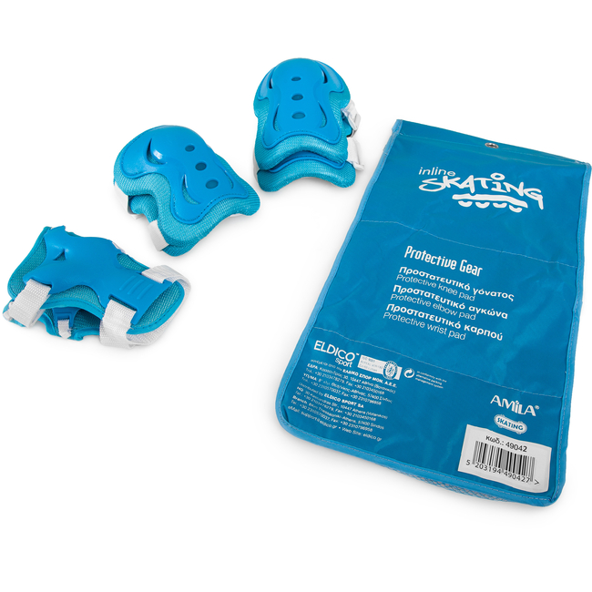 Το προστατευτικό σετ της AMILA προσφέρει μια ολοκληρωμένη προστασία στο παιδί κατά την εξερεύνηση των σπορ όπως το skateboard, το inline skating, την ποδηλασία και γενικώς τα «riding» sports.