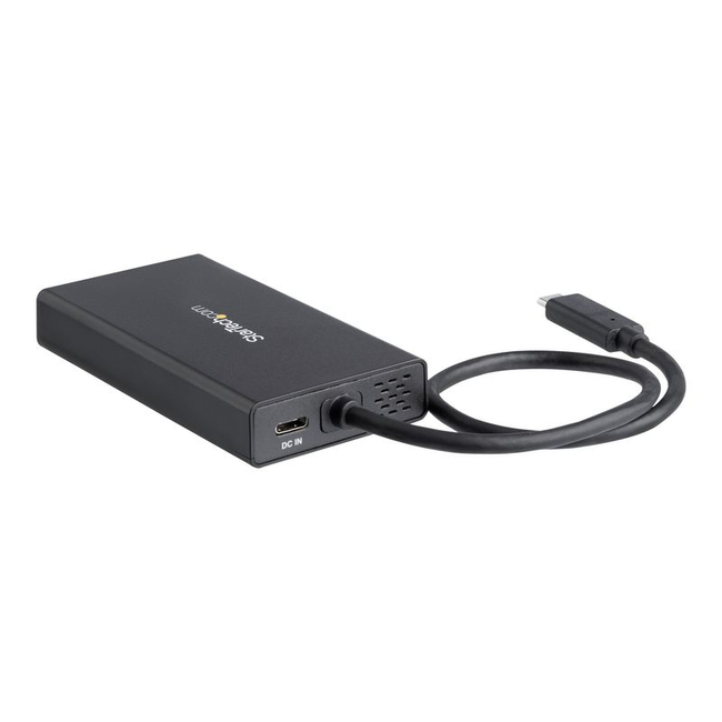 The portable laptop docking station features a USB-C Power Delivery port that lets you power and charge your USB-C laptop during a presentation or while you're working. It's perfect for port limited laptops with a single USB-C port. Even with the adapter connected to the laptop, you can still power and charge your laptop with a USB-C power adapter.